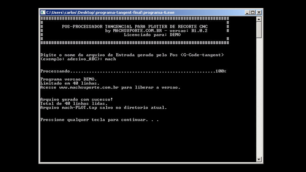 O software Corte Tangencial para Ploter CNC Mach3 na versão DEMO executa somente 1000 linhas.